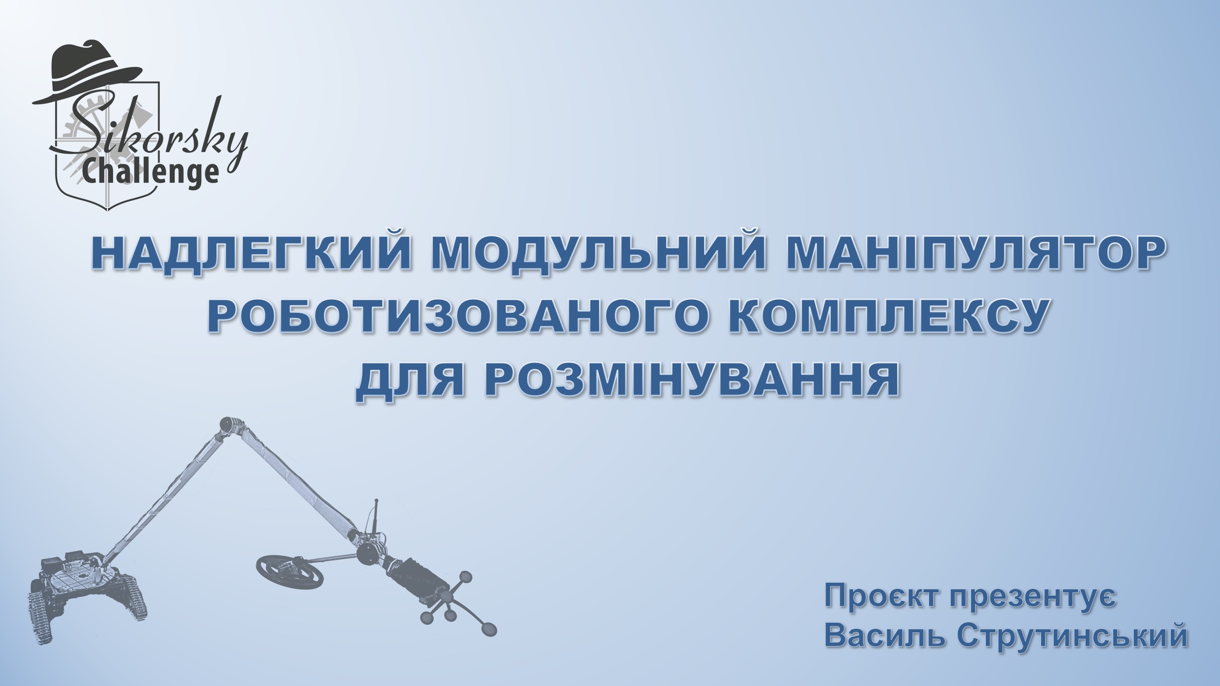 Проєкт на Sikorsky Challenge 2025 – НАДЛЕГКИЙ МОДУЛЬНИЙ МАНІПУЛЯТОР РОБОТИЗОВАНОГО КОМПЛЕКСУ ДЛЯ РОЗМІНУВАННЯ